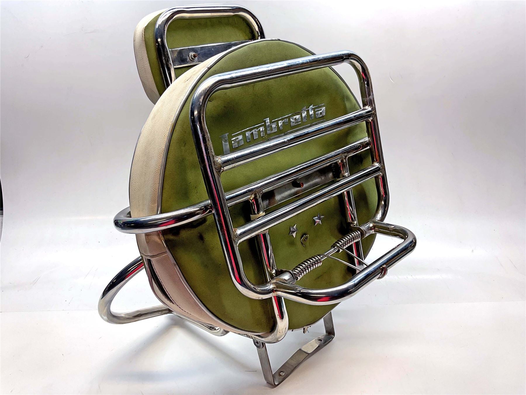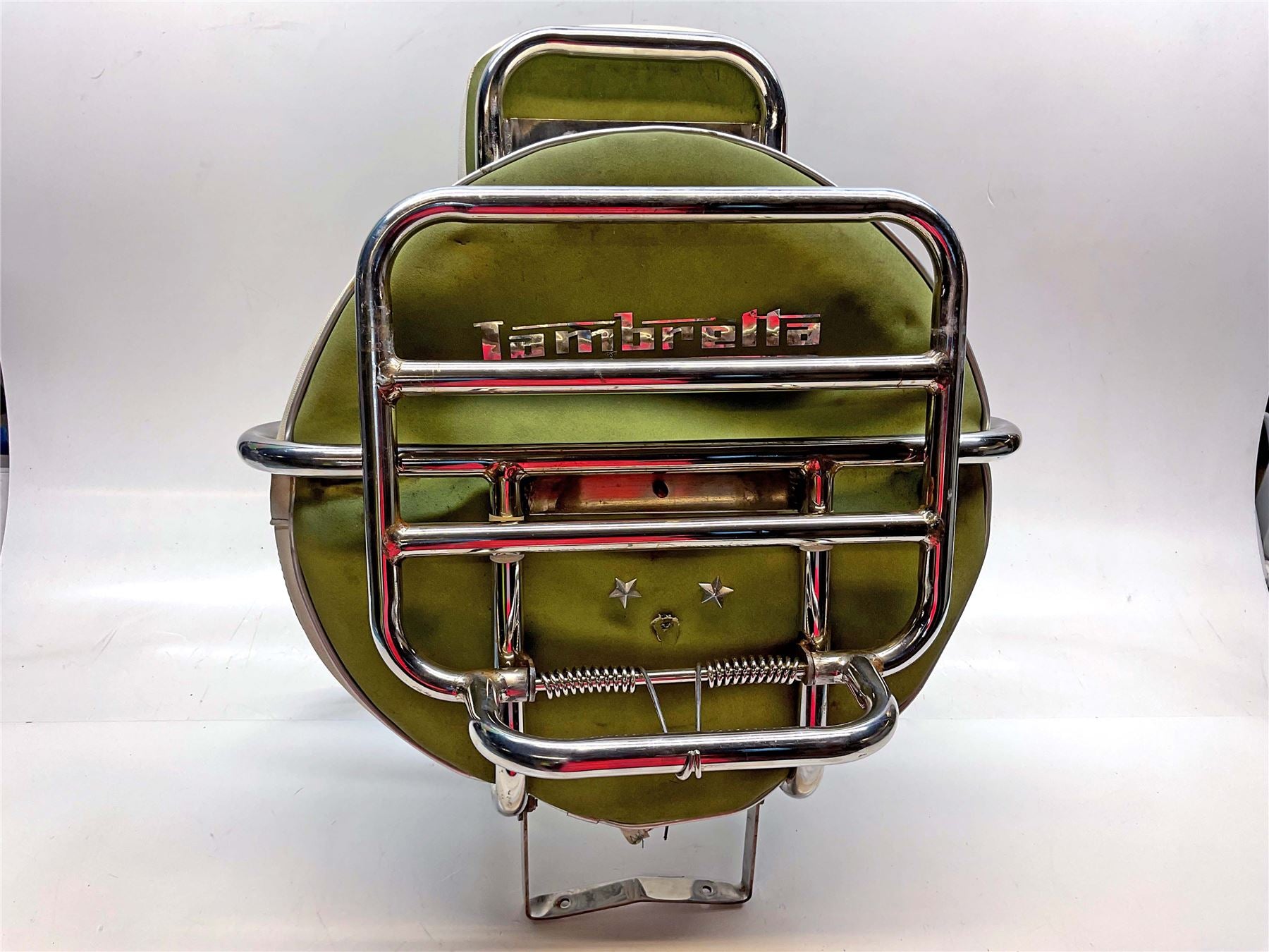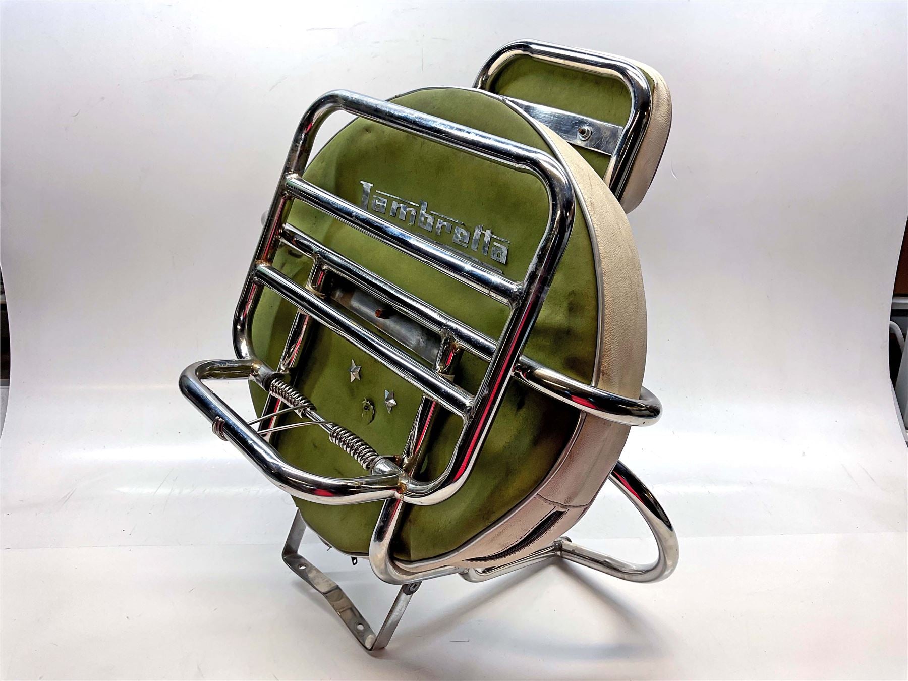 With wheel cover and back pad in green leather, some rust - Here at MotoMine we take pride in helping fellow bikers get back on the road. We make every effort to accurately represent our parts so you can buy with confidence.
