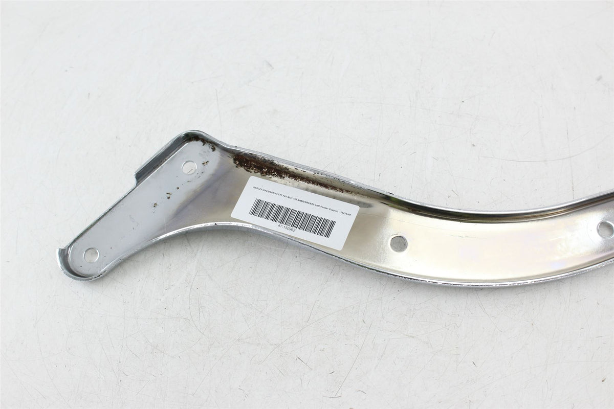 Enhance the look and functionality of your 2008 Harley-Davidson FLSTF Fat Boy with the 105th Anniversary Left Hand Fender Support. This genuine Harley-Davidson part, part number 59434-08, is designed specifically for the 105th anniversary edition of the Fat Boy motorcycle.