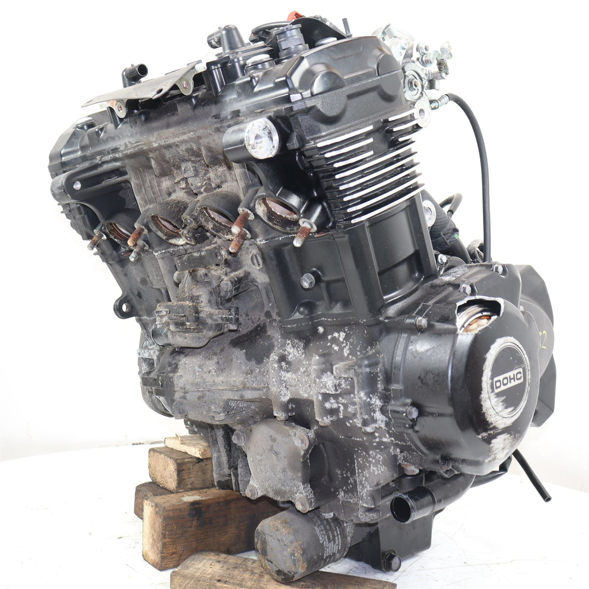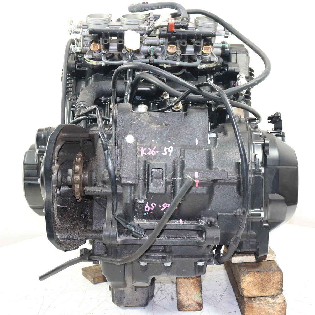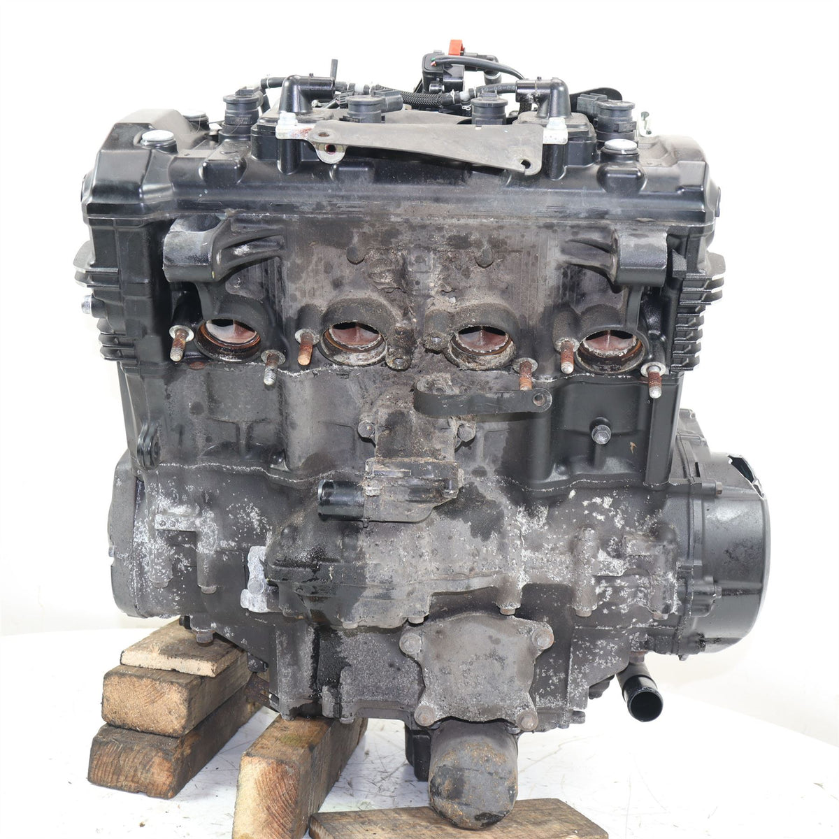Complete Engine Includes Throttle Bodies & Air Box, On The 31ST JANUARY 2024 (11,007 Miles) Missing Exhaust Stud. Crack In Engine case. - PLEASE STUDY ALL IMAGES CAREFULLY AS THEY FORM THE CONDITION DESCRIPTION OF THE ITEM.